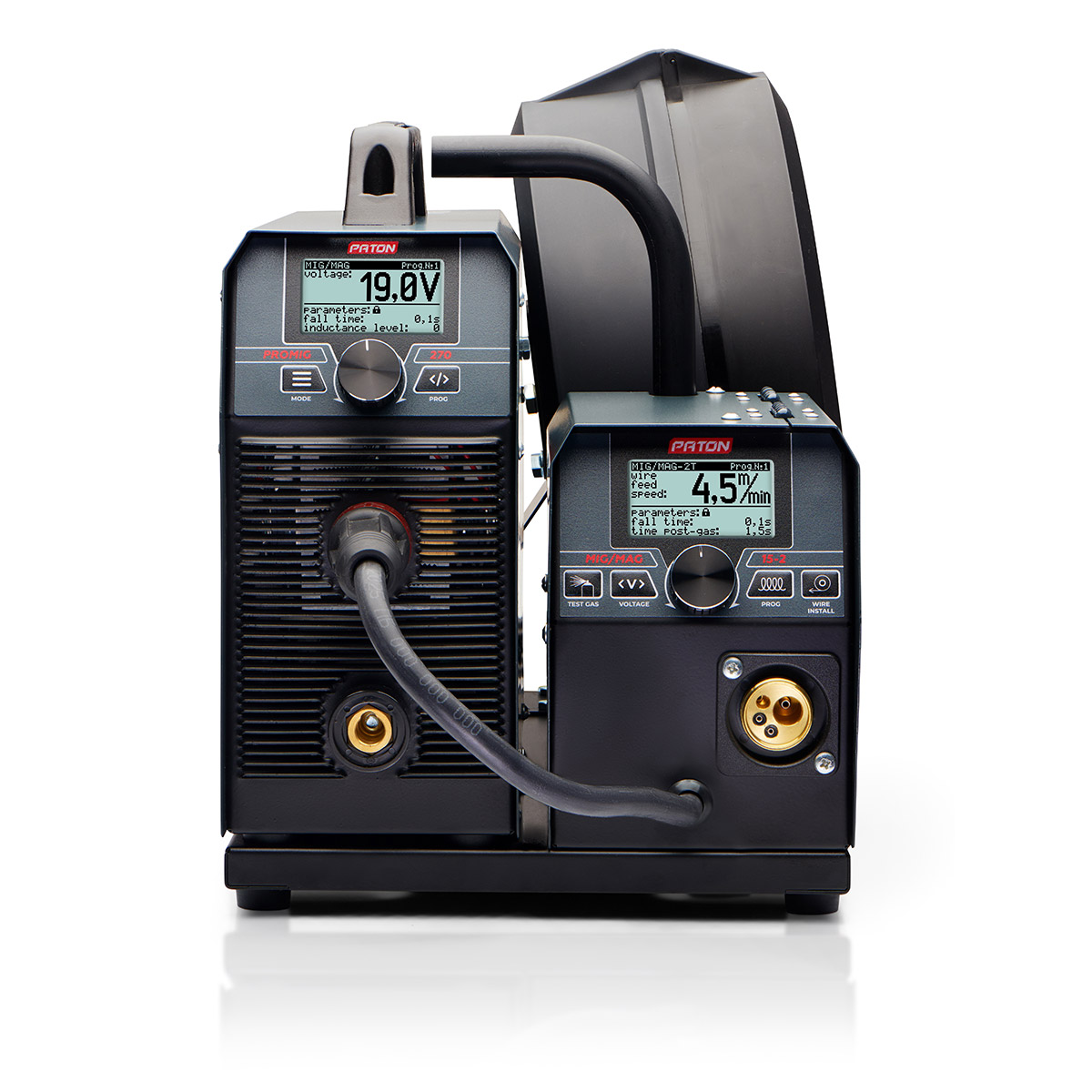 PATON™ Professional serisi yarı otomatik makinelerin karakteristik özelliği, yüksek kaliteli sızdırmaz tel besleyicinin yanı sıra, kullanıcının gelecekte kendi takdirine bağlı olarak tutucuyu değiştirmesine olanak tanıyan ve dünyada bir standart haline gelen mevcut KZ-2 “EURO” tipi konektördür. Bu modelde tel besleyici 2 tel besleme silindiri, 18 kg’a kadar makara ve 4 metrelik bir kaynak tabancası ile donatılmıştır. Profesyonel seri kaynak makineleri kompakt ve sağlam tasarımları sayesinde saha çalışmaları ve yarı endüstriyel koşullar için idealdir. Makinenin küçük boyutu onu son derece mobil hale getirir.