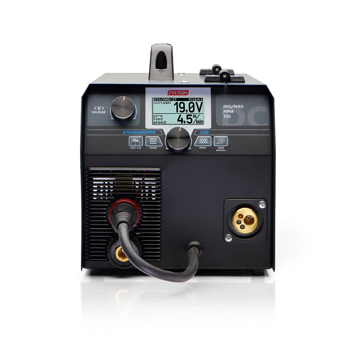 Paton StandardMIG-200 MIG/MAG MMA/TIG Lift, PULSE fonksiyonunu kullanma seçeneği ile yarı otomatik MIG/MAG ark kaynağı, gaz korumalı TIG ark kaynağı ve manuel DC MMA ark kaynağı için tasarlanmıştır.