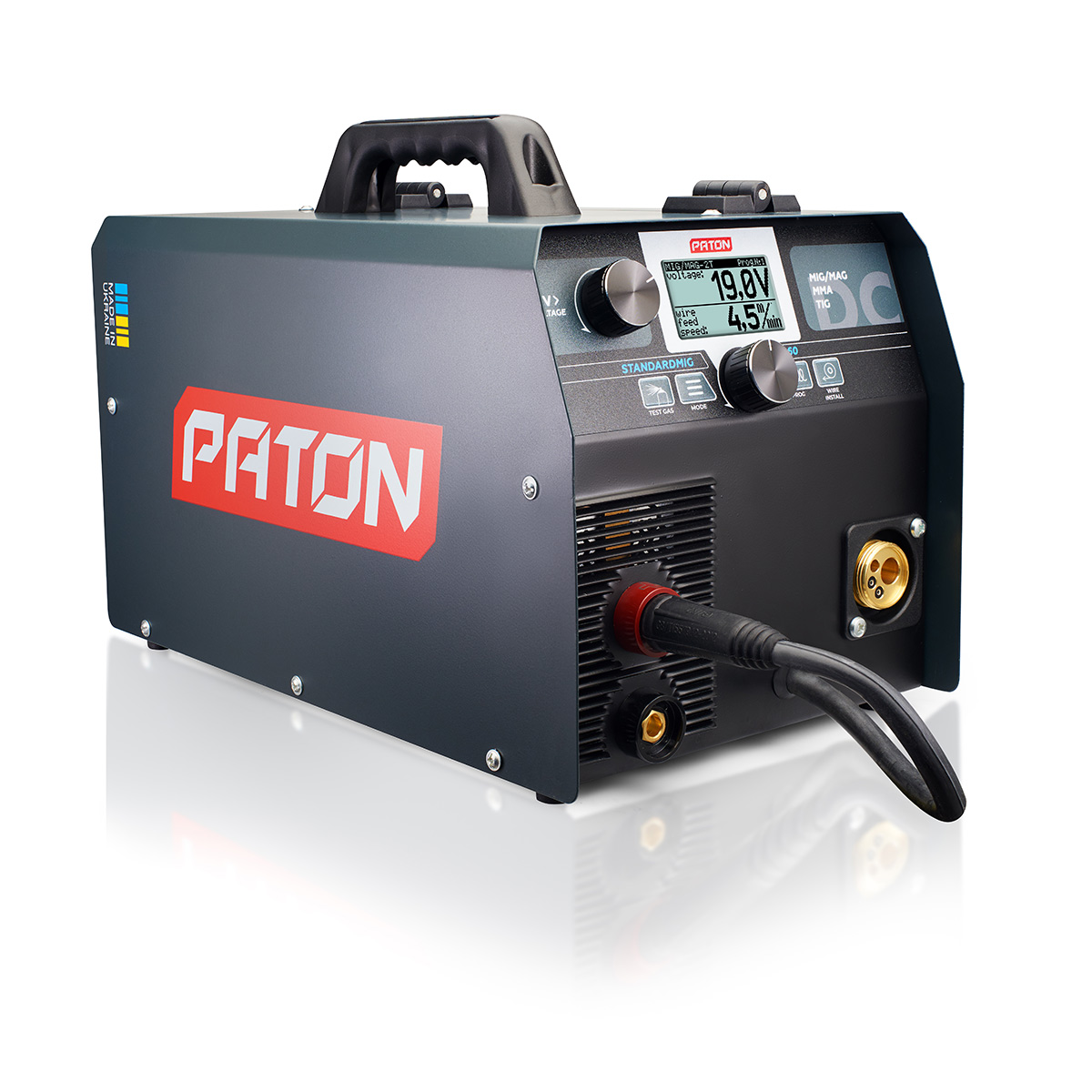 Paton Standard ve PRO serisi MIG/MAG kaynak makineleri, üç aşamalı endüktans ayar fonksiyonu kullanılarak lehimlenebilir. Endüktans kontrolü, ark özelliklerinin kaynak yapılacak parçanın kalınlığına göre optimize edilmesini sağlar. Bu fonksiyon, ark voltajını değiştirirken akım akış hızını değiştirmek için gereklidir. MIG/MAG ile kaynaklanacak bileşen ne kadar ince olursa, endüktans o kadar yüksek olmalıdır (yumuşak ark – daha az erime), daha kalın bileşenler için bunun tersi doğrudur (sert ark – daha fazla erime).