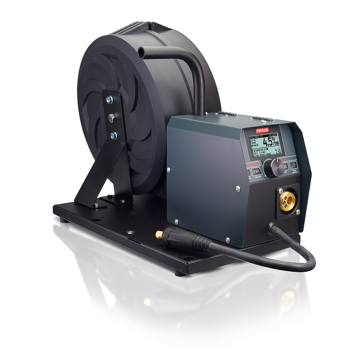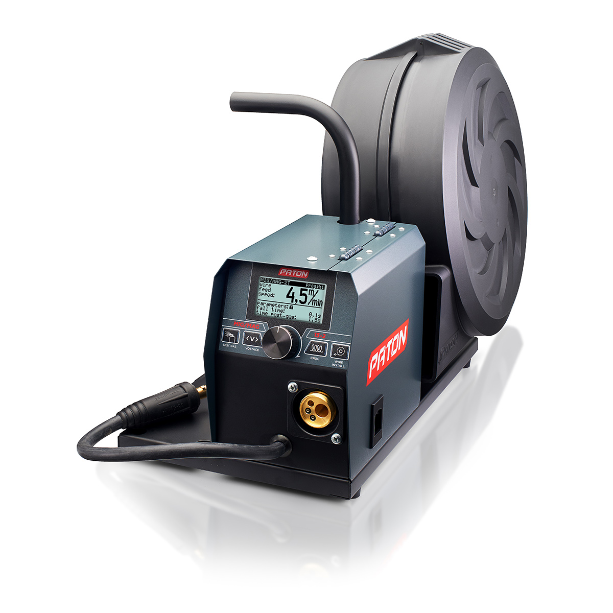2 makaralı tel sürme mekanizmasına ve 15 / 18 kg’a kadar tel makarası için askıya sahip PATON™ tel besleyici